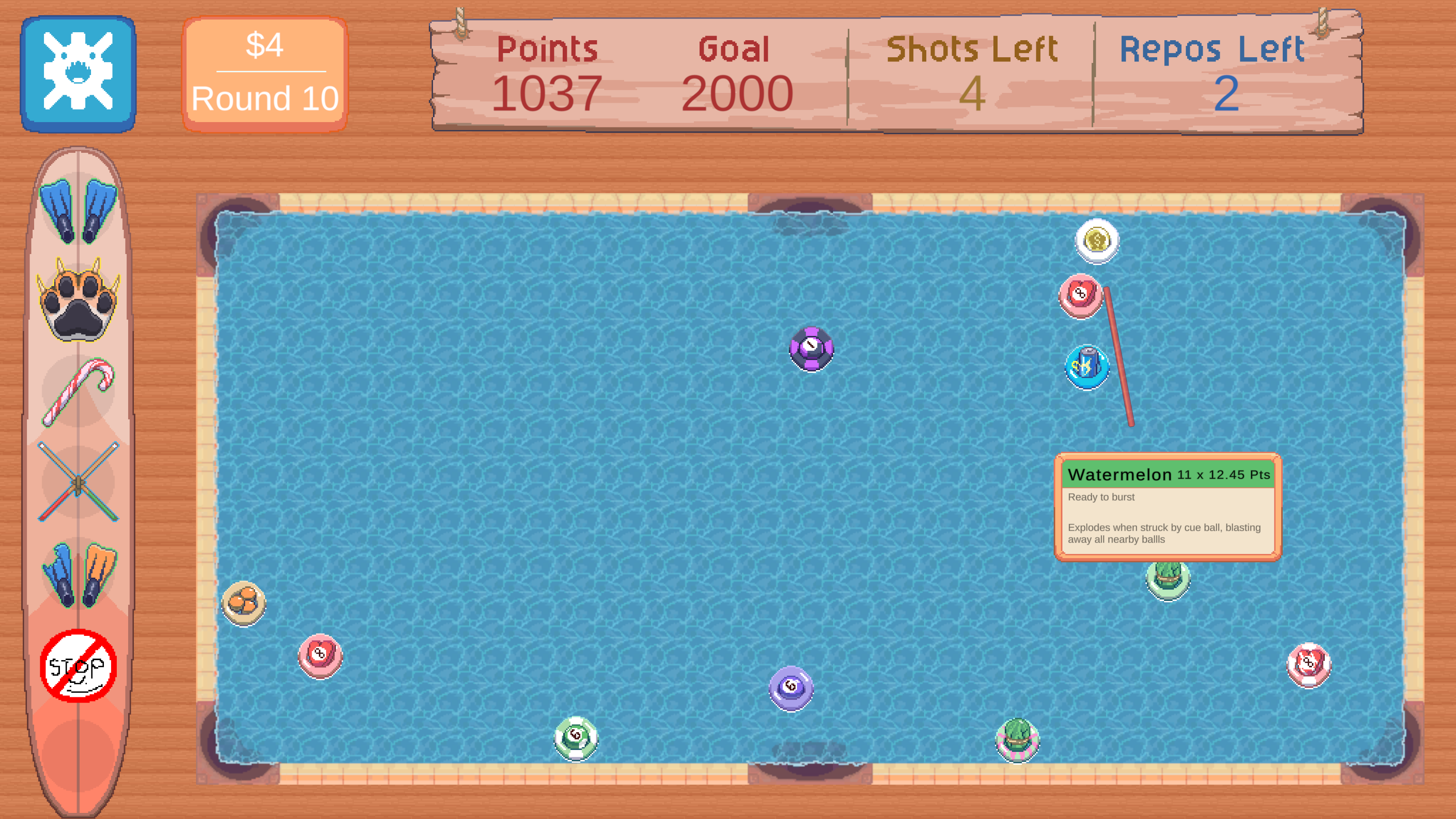 A Balatro-inspired game of pool in a pool! Acquire powerful balls and items to send your score to the moon and back by chaining abilities and optimizing your run